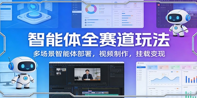 本课程是一套全品类智能体视频制作实战课,覆盖 40 + 不同场景智能体部署与使用,搭配全流程视频制作、剪辑技巧及运营起号方法,零基础也能快速上手,轻松实现多赛道内容