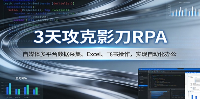 本课程为 3 天攻克影刀 RPA 实战课,聚焦自媒体数据采集与行业自动化全流程,全程实操落地、干货密集。课程从影刀基础操作入手,详解 Excel 读写、网页数据抓取、飞书多维