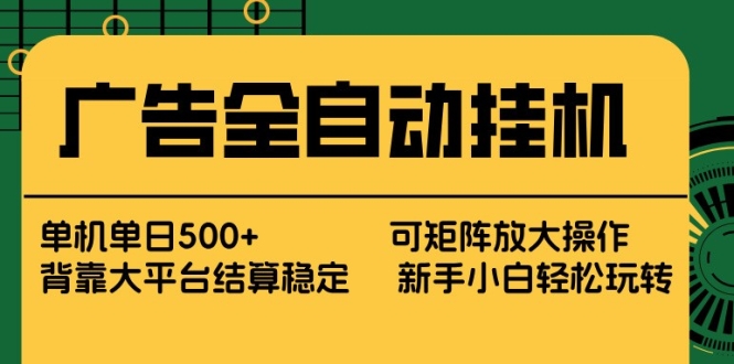 广告全自动挂机 单机单日500+ 矩阵放大 背靠大平台 绿色稳定 新手小白轻松玩转