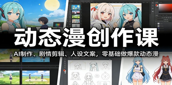 本套动态漫课程是一套完整的二次元 AI 动态漫实战教程,从零基础开始,带你从剧情、文案、人设、分镜,一直做到高清成片。课程详细讲解动态漫核心要点、优秀作品拆解、出