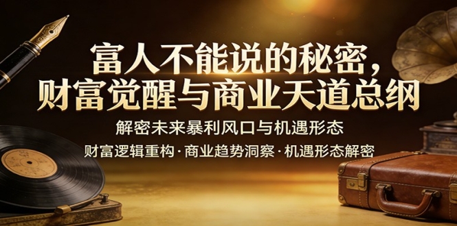 本课程系列深入探讨富人不愿公开的核心秘密,涵盖未来三五年的机遇形态、赚钱内幕、市场营销、灵性觉醒及情感操控等主题。通过分析历史与未来趋势,揭示财富积累、流量变