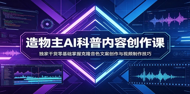 本课程为科普造物主 AI 精选独家教程,全程实操教学。课程分为四节核心内容,从必备软件安装开始,讲解 AI 音色克隆技巧,再到科普类文案创作方法,最后完成完整视频制作