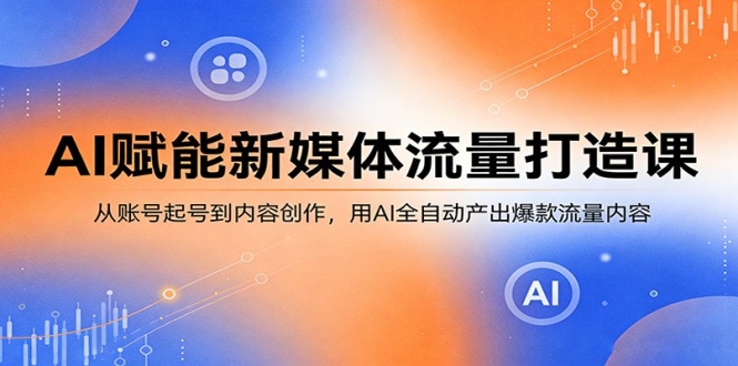 本课程为 AI + 新媒体打造流量生产线实操课,全程聚焦 AI 工具落地与流量变现。课程从账号权重提升、养号过审、主页搭建、三步起号开始,手把手教你用 AI 扒文改写、快速