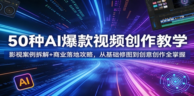 本课程是 AI 创作高阶宝典,聚焦 50 种热门 AI 爆款视频教学,兼顾影视级案例拆解与商业落地攻略。课程内容丰富多元,从基础的水印去除、画质修复、老照片翻新,到中高阶