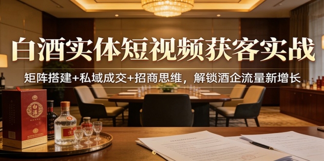 本课程为白酒实体短视频获客实战课,专为白酒实体店、酒企打造,聚焦短视频获客与私域成交全流程。课程从创业心法、赛道秘密切入,详解短视频矩阵搭建、不同类型内容创作