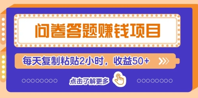 问卷赚钱零撸小项目,新手小白也能操作,每天复制粘贴2小时,收益50+