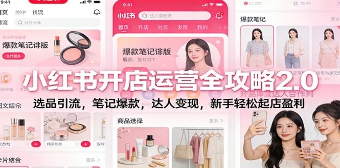本课程《2025小红书电商带货系统课程2.0》是针对小红书电商从零起步的完整实战教程。课程涵盖开店全流程设置、精细化选品与货源挖掘、高效内容创作与笔记引爆、达人号运营