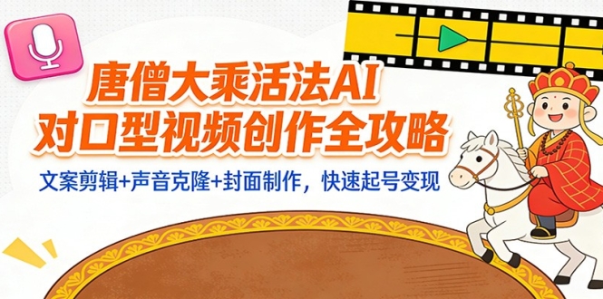 本课程是“大乘活法”的实操教学,旨在系统教授如何利用AI工具制作对口型、声音克隆类视频内容。课程分为手机和电脑双端教学,涵盖从文案获取与进阶改写、视频素材下载、A