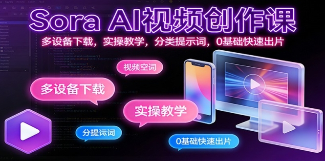 这门 Sora AI 视频创作玩法教学课,专为想快速上手 Sora 的新手打造全流程指南!课程覆盖安卓、苹果、电脑多设备安装教程,配套开心上网地址及安装问题解决方案,手把手教