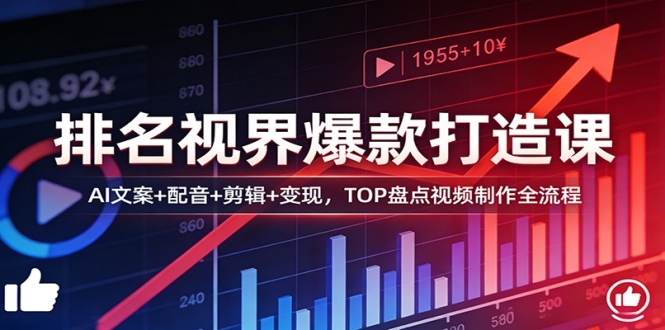 本课程为 TOP 盘点(排名视界)视频实战教程,专注教你从 0 到 1 制作高流量排名类短视频。课程包含赛道介绍、模板制作、AI 选题与文案、配音、高清素材下载、完整剪辑流