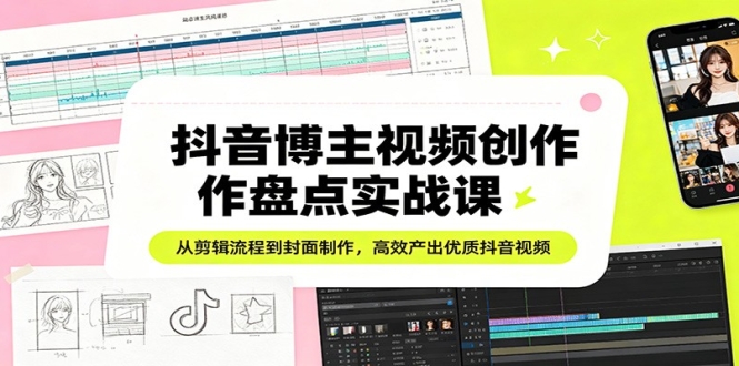本课程为抖音博主视频创作盘点实操课,聚焦博主高效创作核心需求,配套完整工具、素材与教程。课程涵盖视频制作全流程、字体参数、关键帧转场、横竖屏封面制作、BGM调节等