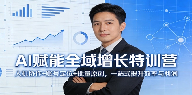本课程为 AI 驱动的全域增长实战课,以超低门槛带你用 AI 实现全域增长。课程分为 3 天主攻核心内容:Day1 建立人机协作新范式,提升效率、利润与竞争力;Day2 掌握账号定