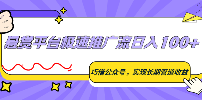 悬赏平台极速推广流日入100+,巧借公众号,实现长期管道收益