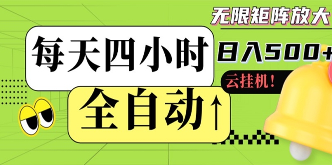 全自动挂机 每天四小时日入500+ 可批量操作 时间自由:24 小时后台挂机,不耽误主业,长期稳定:适合个人、小团队批量操作,随开随做!