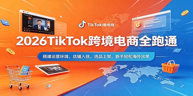 本课程聚焦 2026 年 TikTok 东南亚跨境电商,专为零基础新手打造从 0 到 1 完整运营体系。客观分析当下赛道入局价值与发展前景,手把手讲解工具注册、电脑环境部署、店铺