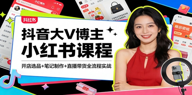 本课程由抖音大 V 博主亲授,是一套小红书从 0 到 1 起号、开店、变现的全流程实战课。内容涵盖店铺注册、类目选择、养号、对标、选品、发货、上架等开店全流程;手把手教