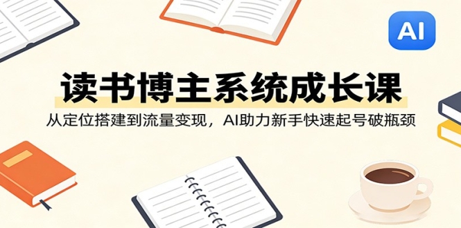 本课程为 AI 时代读书博主系统进阶课,专为新手及转型博主打造,覆盖读书博主从入门到盈利的全流程。课程以 DeepSeek 实操为核心,搭配账号定位、起号技巧、爆款选题、图