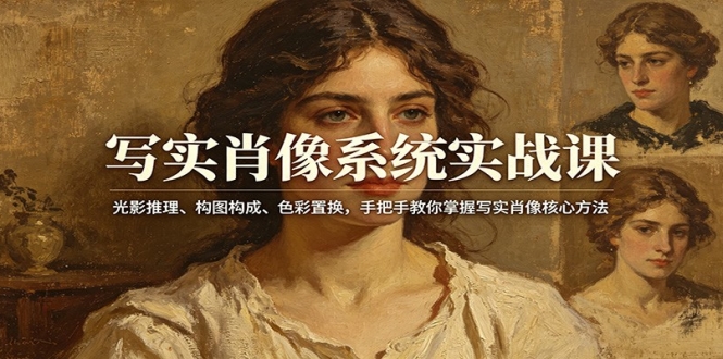 本课程为写实肖像系统课,采用分阶段递进式教学,从基础造型、绘画节奏与对比入手,逐步深入空间形体、光影推理、构图构成、色彩表现等核心内容。课程包含大量实操示范、