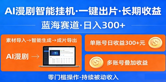 AI漫剧智能挂机,一键出片,长期收益,蓝海赛道,日入300+