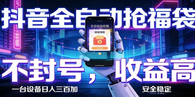 本项目搭载全自动AI拟人智能脚本,24小时无人值守挂机,精准抓取抖音福袋福利,设备稳定运行不封号,单台设备日均收益300+,零门槛、易操作,新手也能轻松实现被动增收。